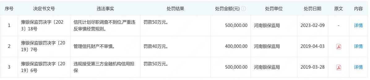 2023年,百瑞信托再一次领到河南银保监局50万元的罚单,违法事实为“信托计划尽职调查不到位,严重违反审慎经营规则。”
