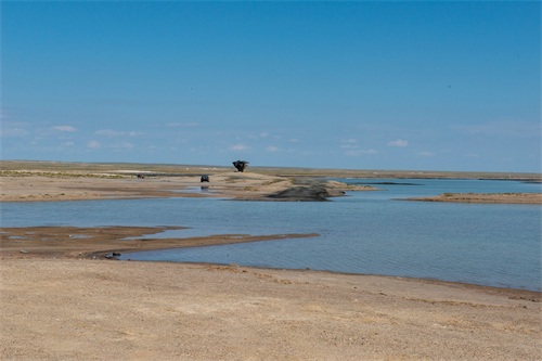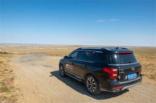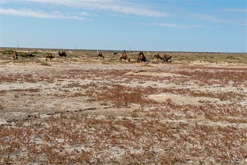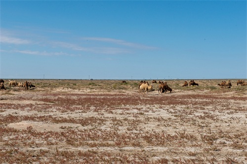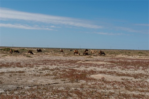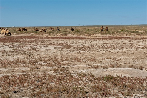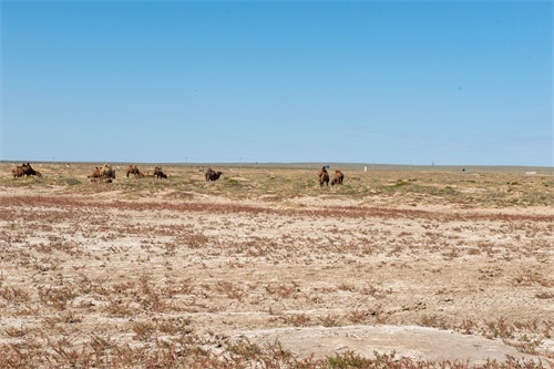 离开国门景区,导航带领我们前往“盐池”,到达“二连额仁敖包”,前方停有警车,我们过去也没有人拦我们,通过小路继续向前,前方没有路了,这里草原的风景特别好,抬头看见边境视频监控,立马调转车头回去,从新规划线路前去二连盐池,途径盐碱地一峰峰骆驼,在形似戈壁的荒漠中慢慢移动着身影,像小舟在大海里航行,乘着风,迎着浪。骆驼的眼睫毛是双重的,当风起沙扬的时候,双重的眼睫毛像卫士似的,将沙挡住,不使它吹进眼里。骆驼看上去大概有3米多高,有4米多长。它的脖子很长,它的四条腿很细很长,高高地支撑着瘦骨嶙峋的身体,看上去很有肌肉感。