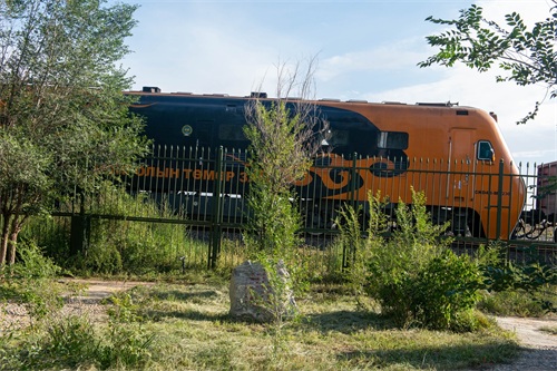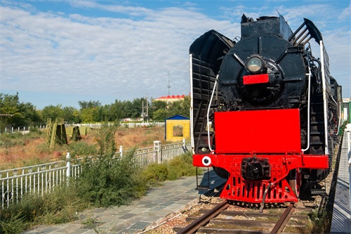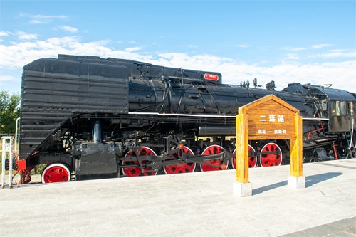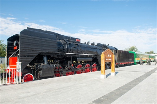 参观完界碑后,徒步行来到火车纪念广场。二连浩特市与铁路有着很深的渊源,1956年1月4日北京经乌兰巴托至莫斯科国际列车正式营运,二连浩特铁路口岸开通之后才有二连浩持镇。所以有人说二连浩特是一座“火车拉来的城市”。时至今日二连浩特早己开通了公路口岸,国际贸易的总体规模己扩大到当初的几百倍。但绝大部分货物运输还是通过铁路实现的。因此,在某种意义上二连浩特的经济是“绑在火车轮子上的经济。火车纪念广场的建设,是为了诉说这座城市极为特殊的铁路情结。