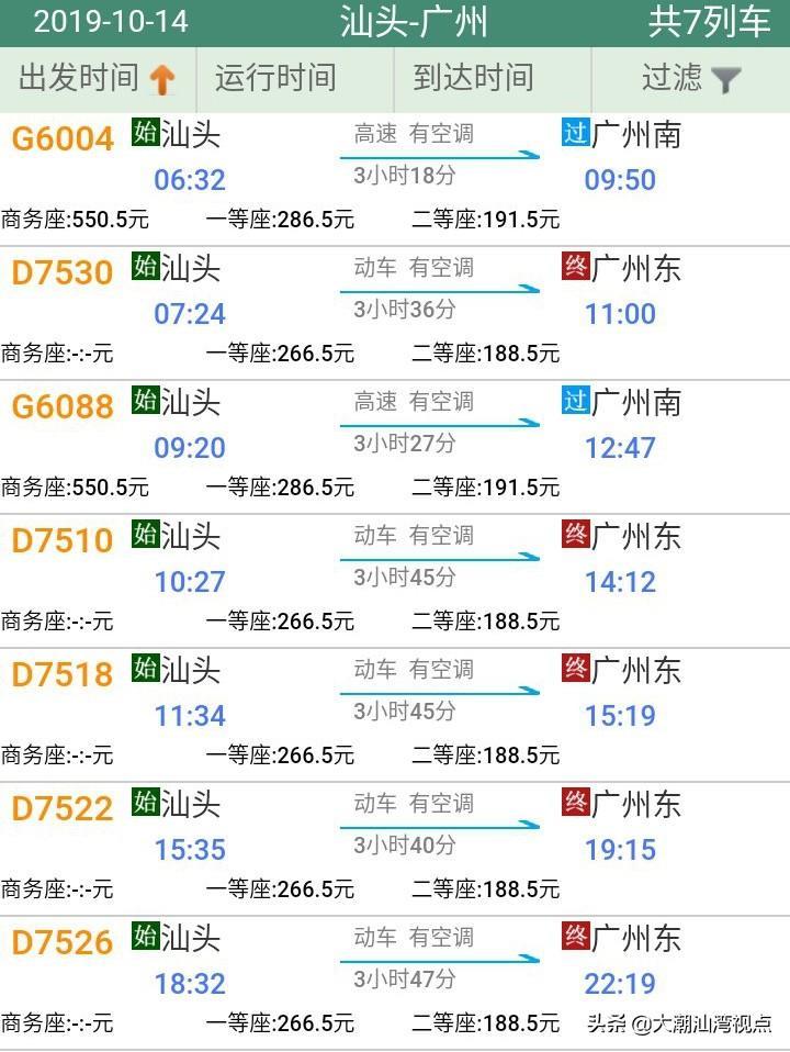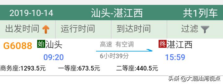 汕头至广州南、长沙南、湛江西高铁票价公布!你觉得票价贵吗