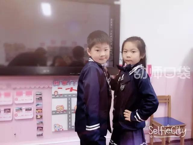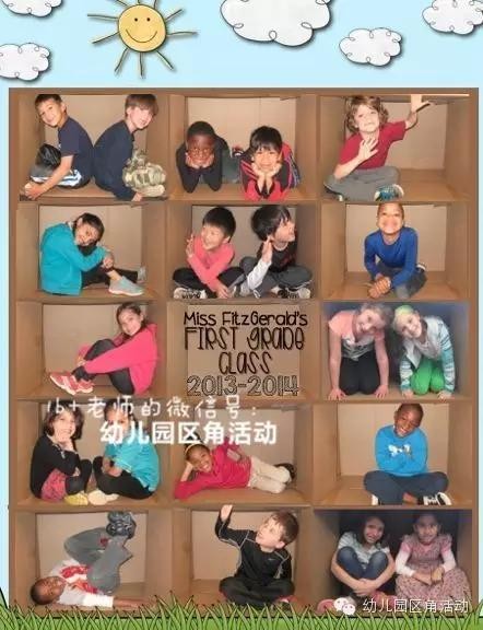 老师拿着相框,里面装上所有的孩子,很有童话的感觉呢。