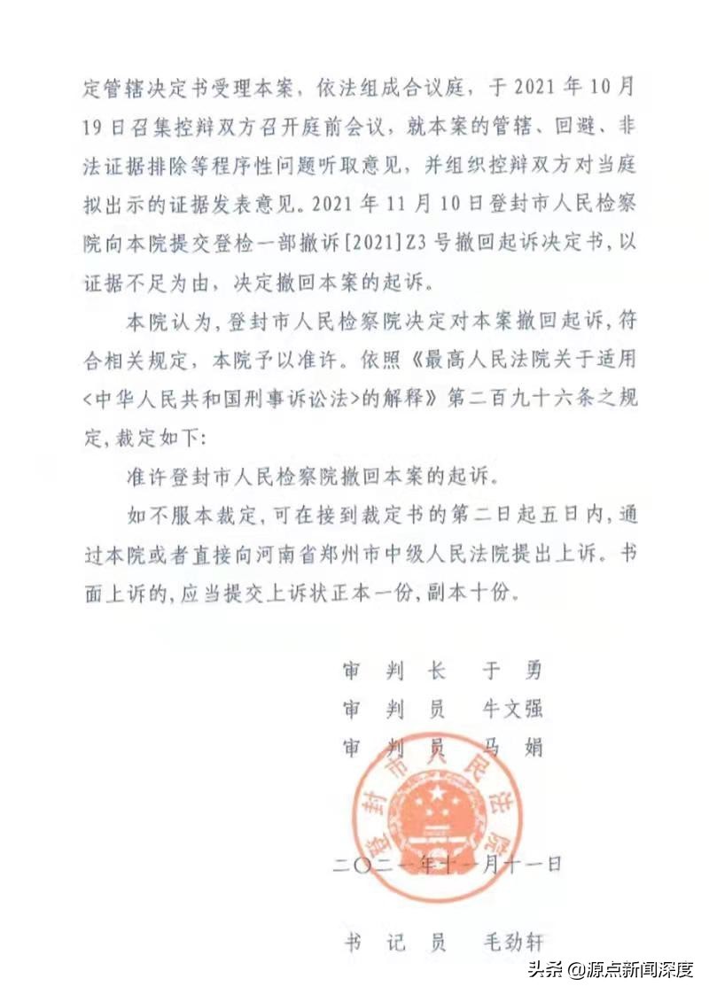 2021年11月12日,登封市检察院出具不起诉决定书称,该院认为刘华构成故意伤害罪、诈骗罪、敲诈勒索罪、强迫交易罪、寻衅滋事罪、非法倒卖土地使用权罪的证据不足,依照相关规定,决定对他不起诉。次日,登封市法院裁定准许登封市检察院撤回起诉,被羁押1535天的刘华获释回家。