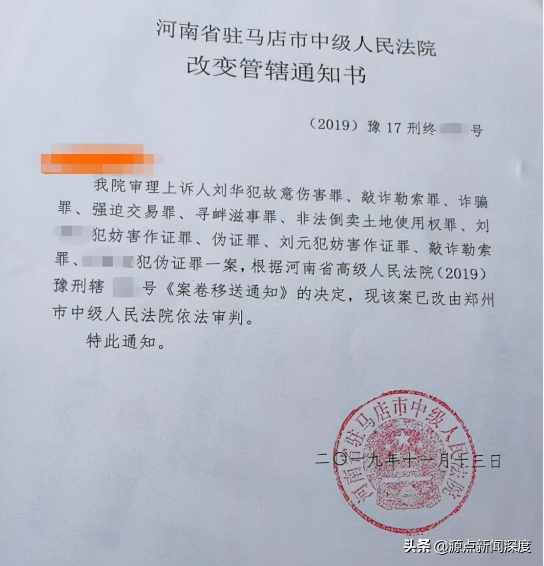“对这样的宣判结果,我们还是不服,又上诉至驻马店市中级法院。”刘华的女儿说,随后经河南省高院指定管辖,此案由郑州市中级法院审理,“郑州市中级法院审理后,又发回平舆县法院重新审判,就在该院重审期间,河南省检察院、河南省高院指定登封市检察院、登封市法院管辖。”