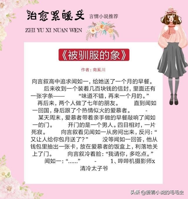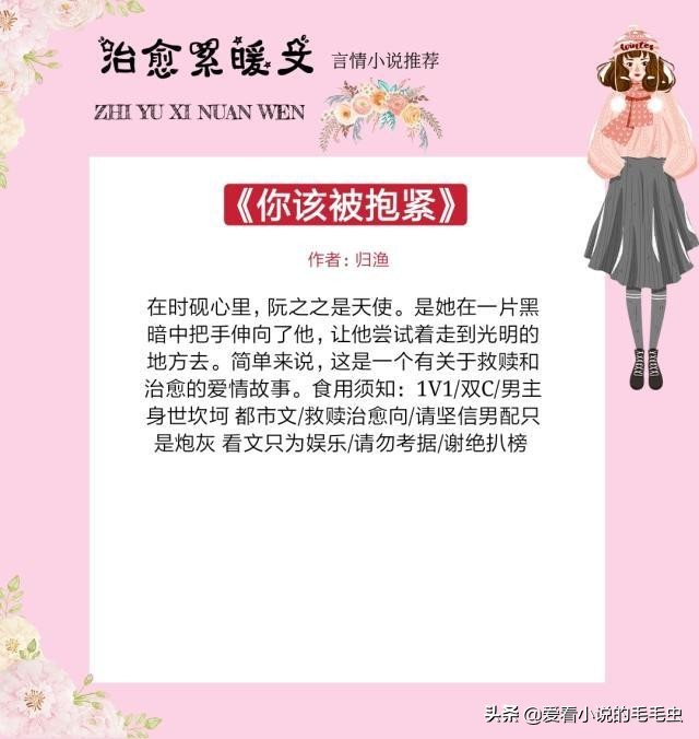 大家好,我是毛毛虫,十年书龄小仙女,每天为大家推荐各种好看的言情小说。希望大家能够喜欢,喜欢的话可以分享给朋友,或者收藏起来。若大家有什么想看的书,可以在下方留言哦。本期整理的是强推4本治愈系言情小说,世界以痛吻我,我却报之以歌