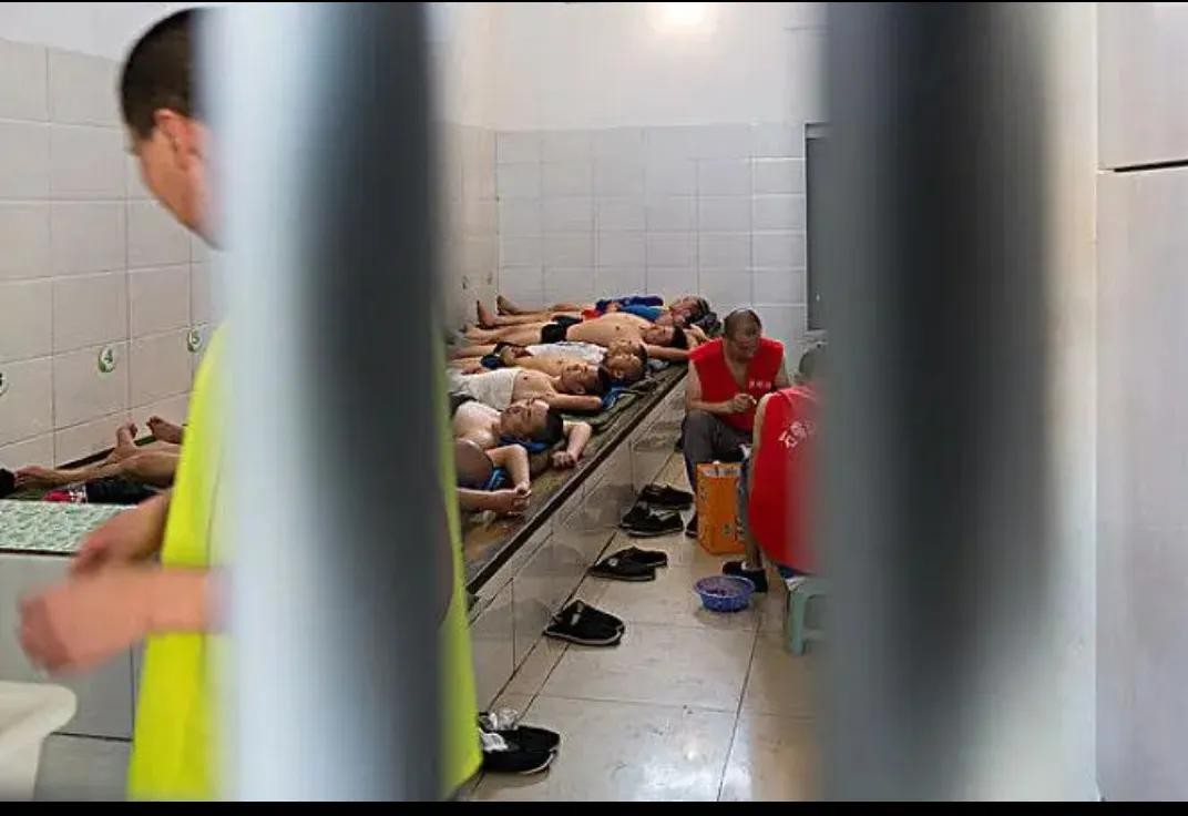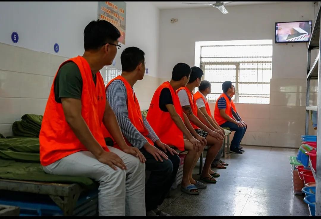 刚刚进入室内,哈嘛,一股汗臭夹杂着霉臭味扑鼻而来,映入眼帘的有二十多个好汉,他们面无朝气,个个眼神看你都像看猎物一样,让你不禁乖巧了许多,说话声音都小了呢,哈。这个拘室大概有二十多个平方,门口上方有一个电视,一个广播,铁门边上有一个通话器,进门的左手边上有一个柜子,里面整齐放着一些拘留服和毛巾一类的东西,柜子的旁边墙上开个小窗口,和刚刚进来拿的盆子一样大。两边都是像北方土炕一样的通铺。往最里面走可以看到放置洗漱用品和吃饭塑料盆的地方,还有一个蹲坑,几个水管,唉,看到这些我就知道这些大汉们都经历啥。想到接下来我也要在这里度过一星期心里不免有点难过。