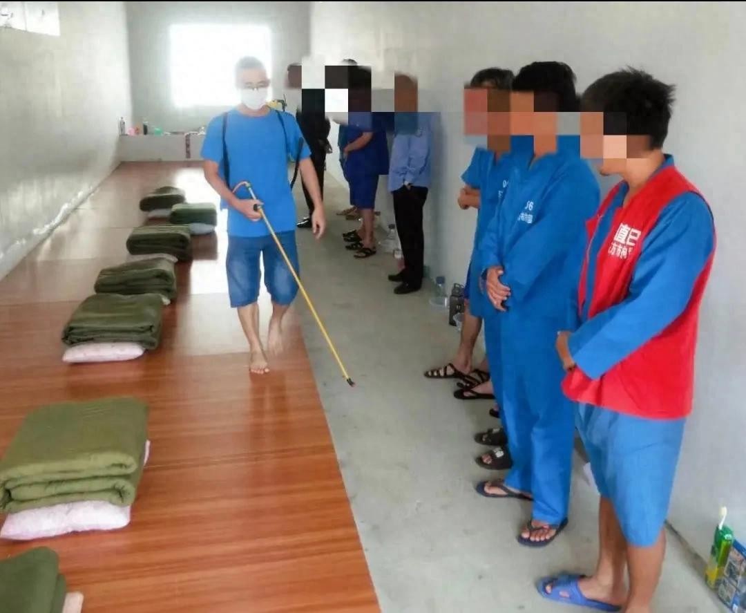 拘留所外围是大概七八米高墙,高墙上有带刺的铁丝网,和你在电影电视剧里看到的一样。刚刚进门就感觉无比压抑,有点阴森,让人不禁寒颤。下车后,拘留所大门口有几个岗亭,里面都是办理入所手续的。第一个岗亭是确认拘留人基本信息以及,第二个是确认体检信息,让人记忆最深的是第三个,是检查被拘留人是否有带违禁品,进入后民警要求全身脱干净,一丝不挂那种,起初我还有点不好意思,不过民警说了大家都是公的,有啥不好意的,确认没带违禁品后,民警会让你从旁边的柜上拿一套拘留服穿上,再带上银手镯,出岗亭后被铐在一根横着的钢管上,给我的感觉像是农村老家栓牲口,等待监所民警带入所内。