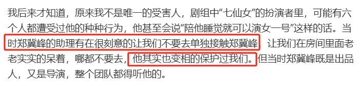 甚至郑某峰还明确说过:只要陪睡,就可以当电影的女一号。