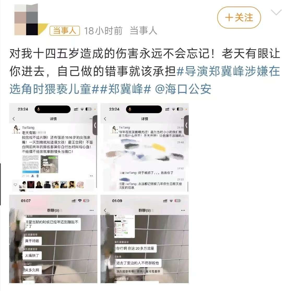 而随着郑某峰被拘消息的传播,多位曾参与其电影拍摄的女演员,也勇敢站了出来。