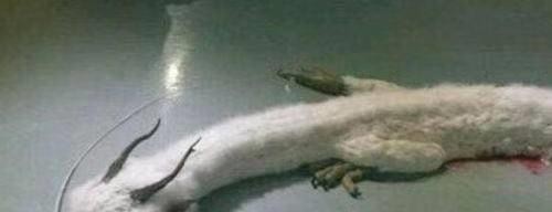 两天后下了一场大雨,然后大家总是可以闻到一阵阵像尸臭一样的味道。工人顺着这个味道想要找到它的来源,在芦苇荡中发现了一个巨大的动物尸体。这位工人将这个消息告诉了当地的村民,于是大家一起去看这究竟是什么动物。