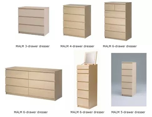 此次召回主要涉及马尔姆(Malm)系列抽屉柜以及其他款式的儿童或成人用抽屉柜。