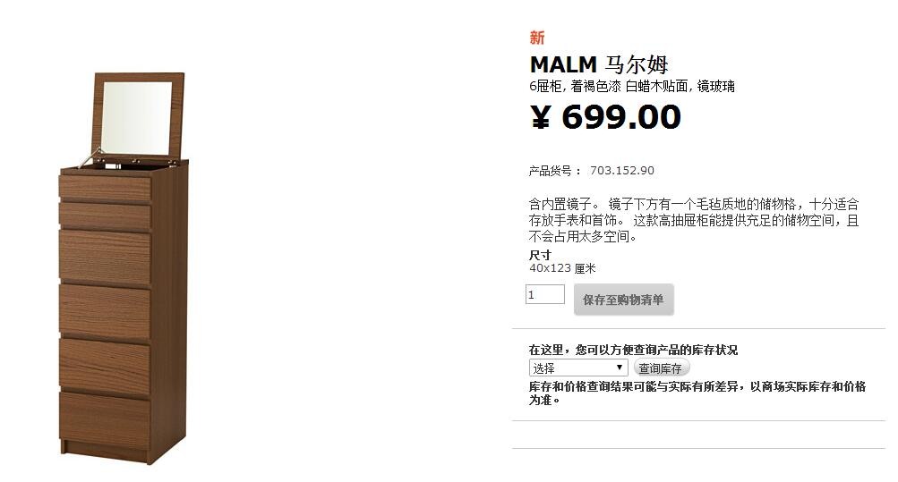 ↑宜家中国官网依然正常销售Malm系列抽屉柜