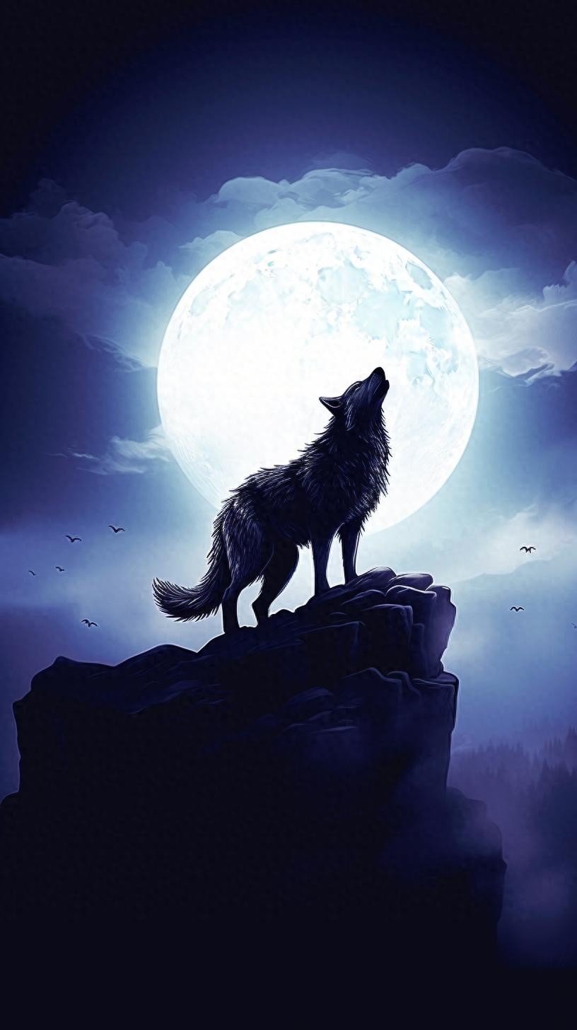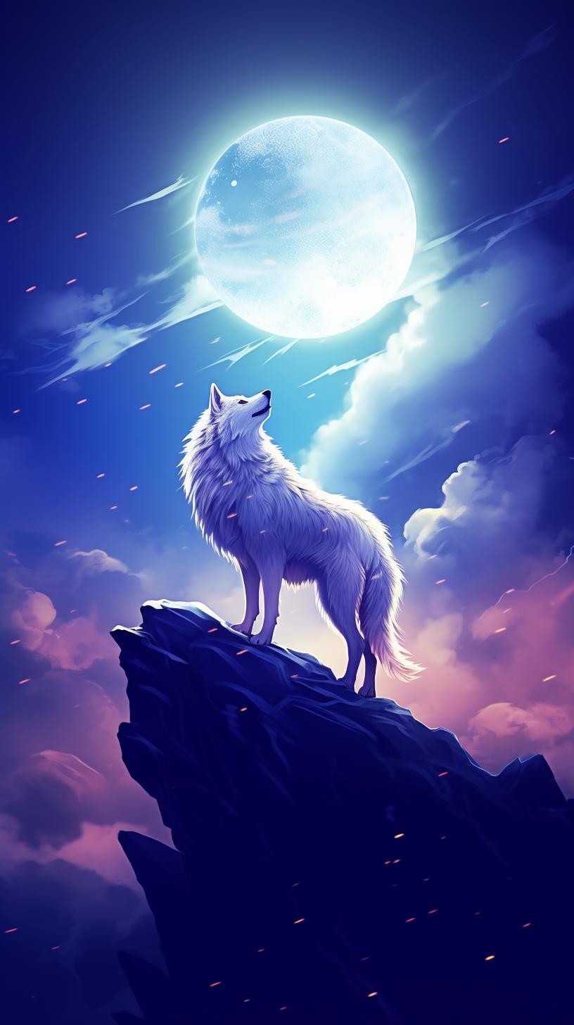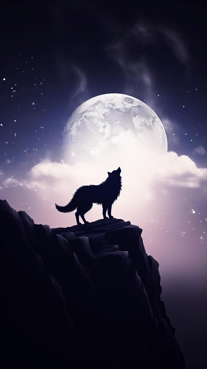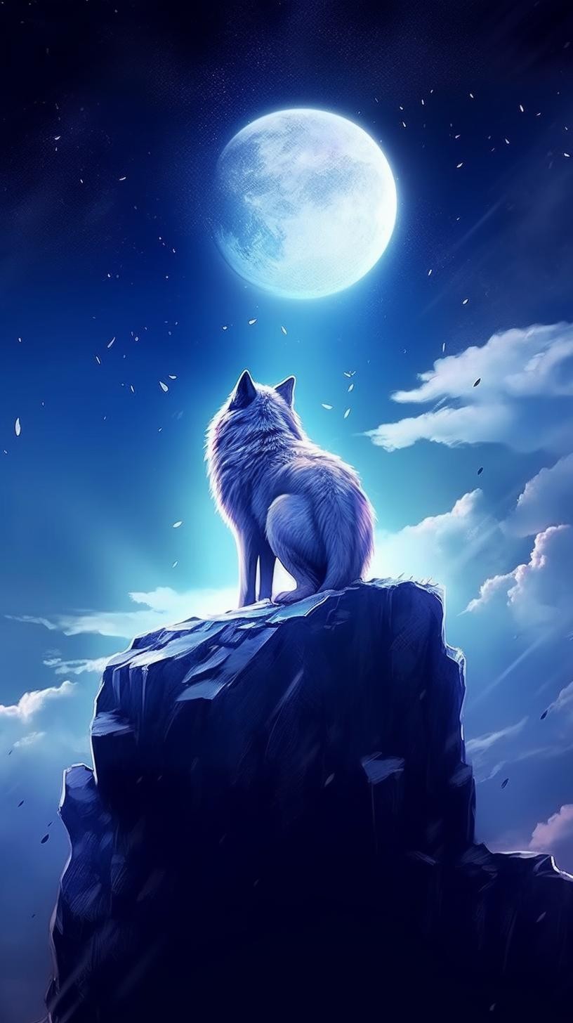 本组图片大约分为两个色系、两种画风的图片。梦幻蓝紫色系体现的是柔美、浪漫的画风。黑白插图风格体现的是傲视苍穹的广博胸怀和孤寂感。画面中的狼,似乎在发号施令、时而回头探月、时而仰天长啸、时而凝视远方、时而孤傲沉思,或许,总有一款是你喜欢的吧。