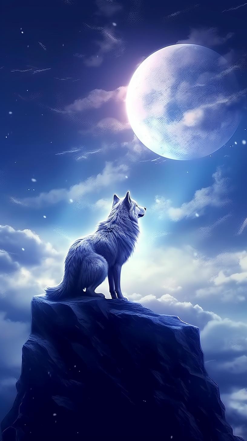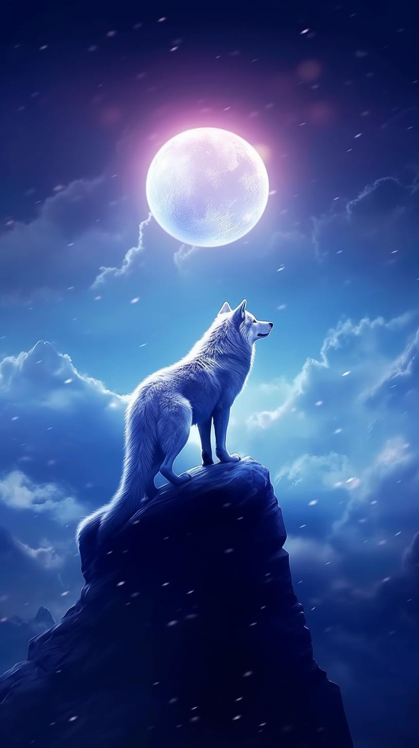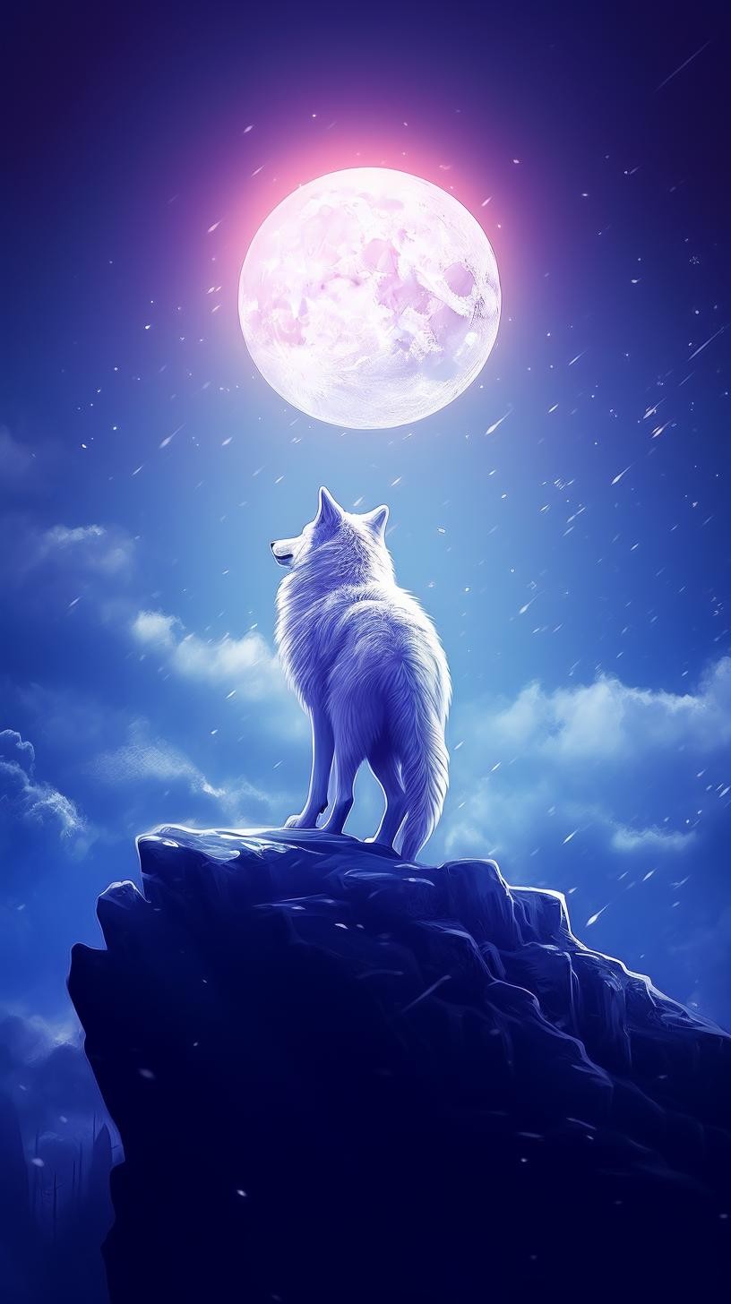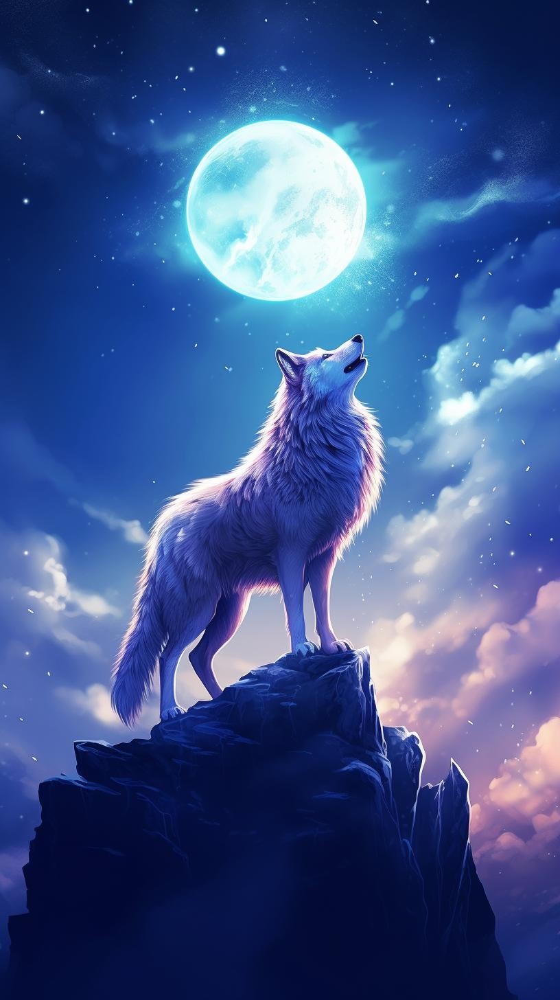本组图片大约分为两个色系、两种画风的图片。梦幻蓝紫色系体现的是柔美、浪漫的画风。黑白插图风格体现的是傲视苍穹的广博胸怀和孤寂感。画面中的狼,似乎在发号施令、时而回头探月、时而仰天长啸、时而凝视远方、时而孤傲沉思,或许,总有一款是你喜欢的吧。