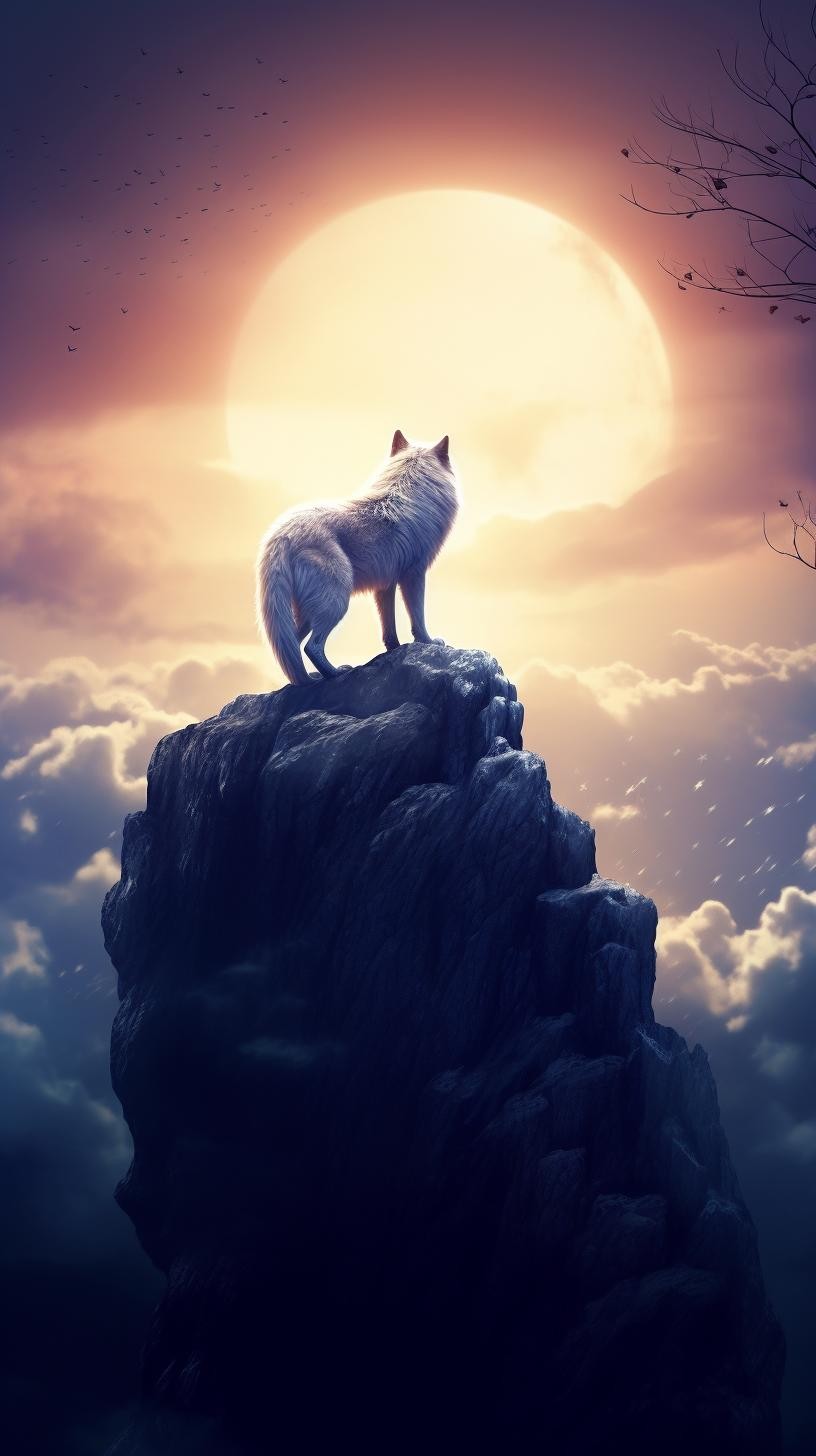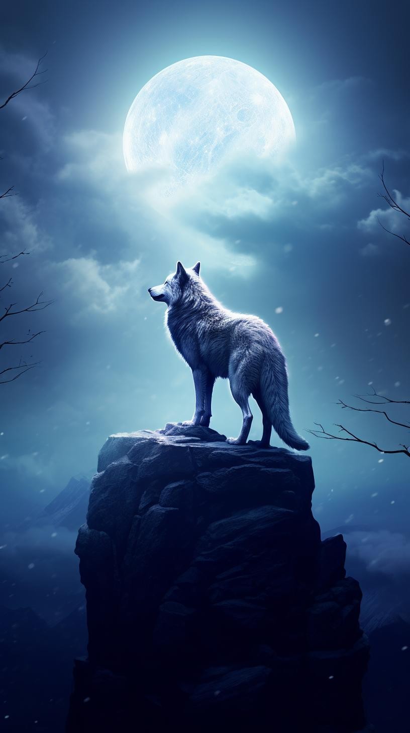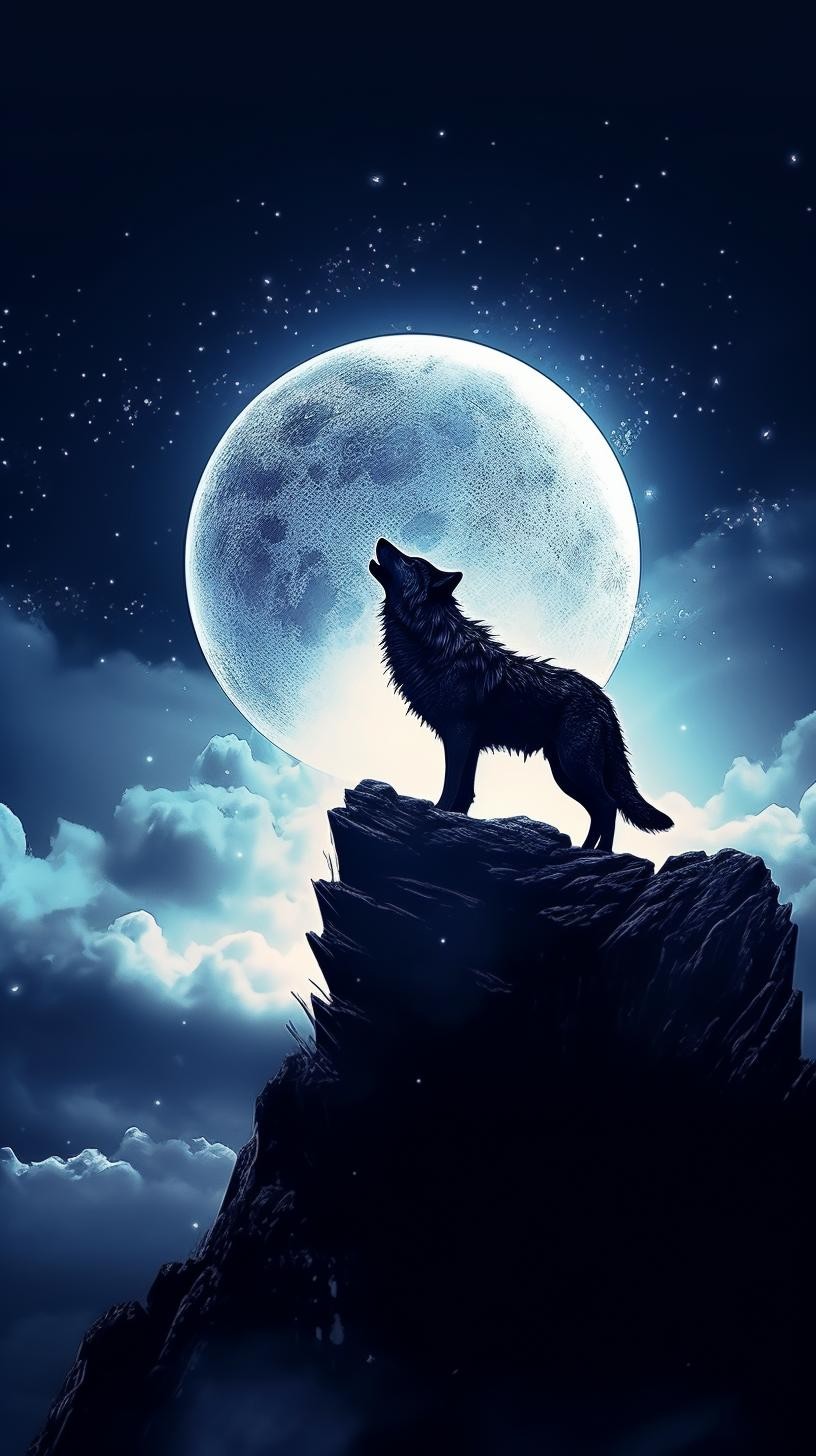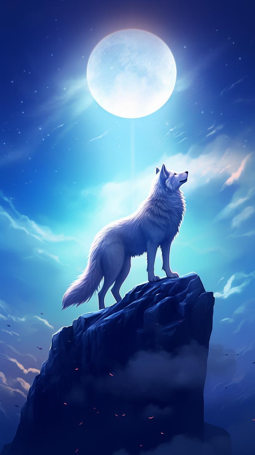 本组图片大约分为两个色系、两种画风的图片。梦幻蓝紫色系体现的是柔美、浪漫的画风。黑白插图风格体现的是傲视苍穹的广博胸怀和孤寂感。画面中的狼,似乎在发号施令、时而回头探月、时而仰天长啸、时而凝视远方、时而孤傲沉思,或许,总有一款是你喜欢的吧。