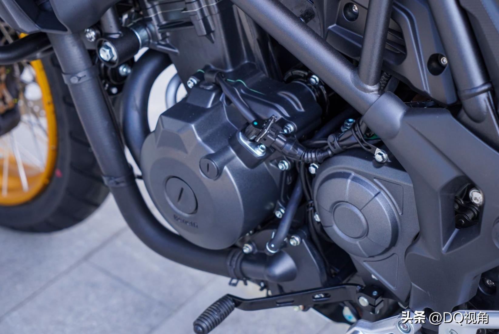 动力方面这台车如我们上面所提到的,采用的是550cc的直列双缸发动机,最大马力是在8500转爆发,可以输出61.2马力;而最大扭矩则在6500转爆发,最大为55NM。作为一款摩旅ADV车型,这个动力输出调教其实偏向于中高转;从这点上来看,公路及铺装路面骑行,会更能发挥它宽大车身的骑行舒适度。