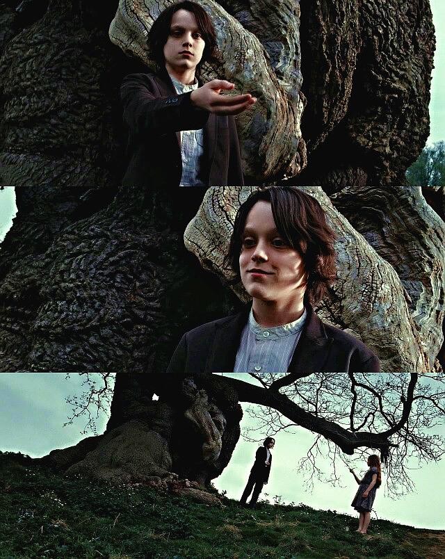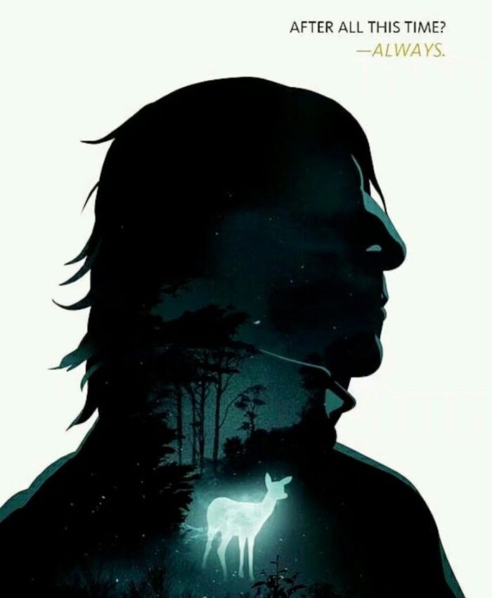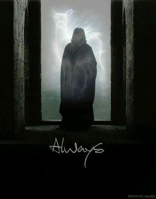 斯内普习惯性的隐藏着自己爱与善,他展露给世人的总是自己的恨与恶,但在他的灵魂深处,却拥有人性中最珍贵的一面:爱与勇气。在此之前,尚且有人会说斯内普的付出只是为了儿女私情,无关苍生;在此之后,我们都要承认,此番誓言,已是大爱。当对爱情的守护中被融入了大义,这份坚守就更显厚重。面对正道,他受千夫所指,万人唾弃;面对邪道,他如临深渊,如履薄冰。当他的生命随着鲜血一同耗尽时,在奄奄一息之际,他对哈利说“Look ……at ……me……。”透过哈利湖水般的绿眸,他终于再次看到了故人的影子,他用了17年的时间去忏悔,去弥补,去寻求原谅,此刻他终于得到了解脱。庆幸魔法世界有着可以回望记忆的冥想盆,让一切的冤屈都得以昭雪,让所有真情都不被辜负。