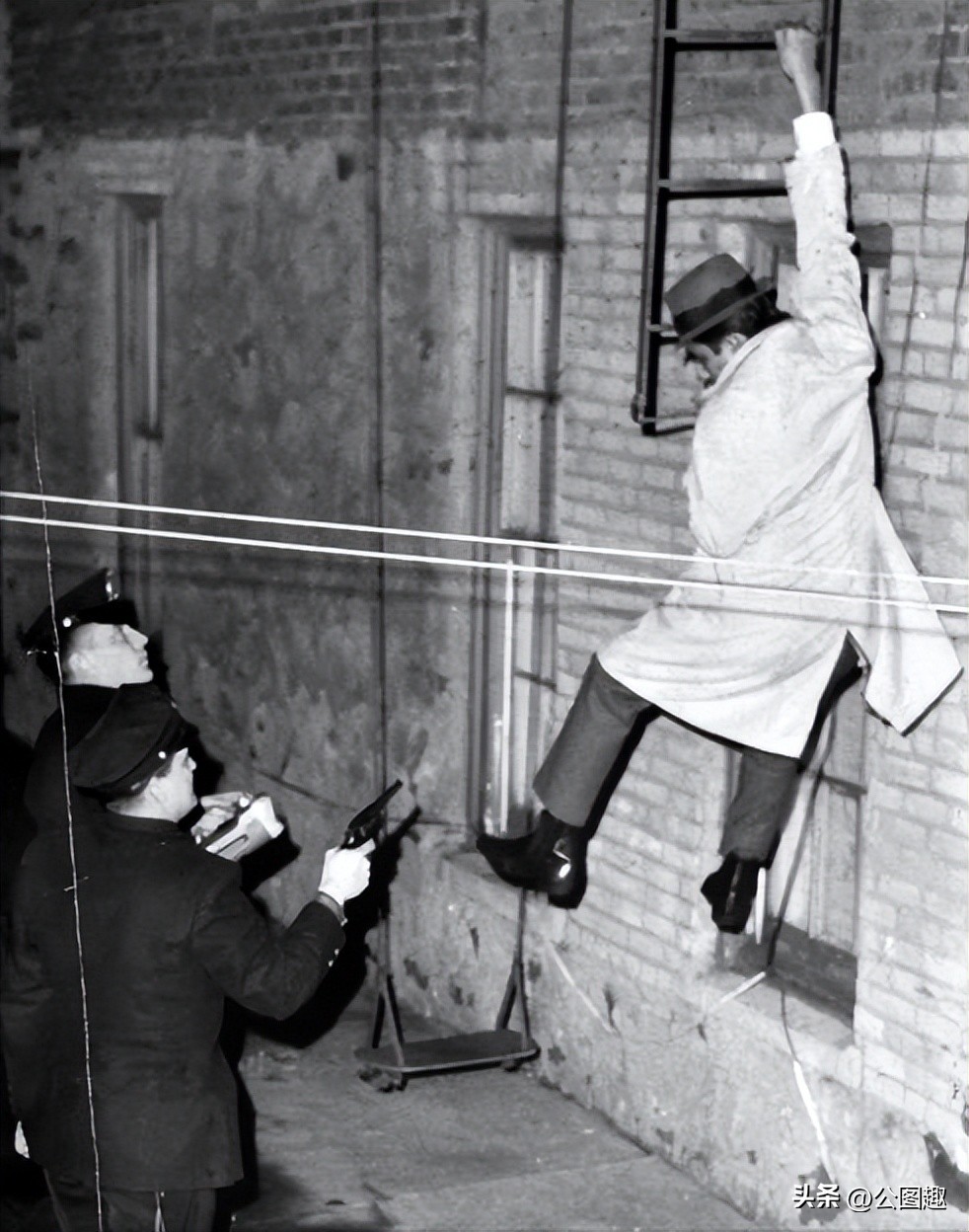 1964 年 12 月 19 日,两名警察逮捕了一名试图从消防梯逃走的抢劫嫌疑人。