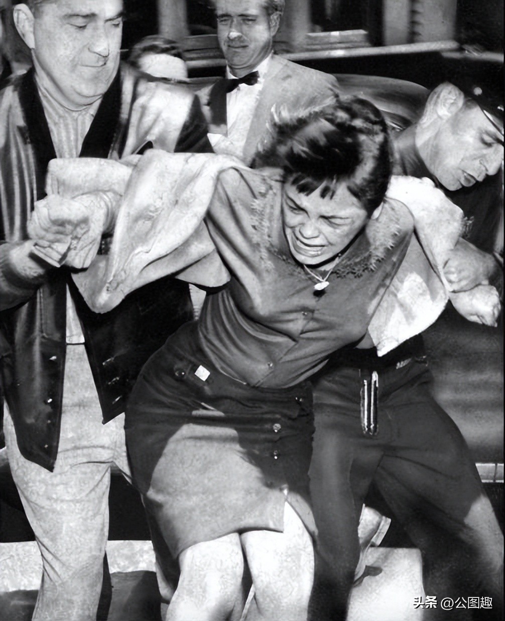 1959 年,15 岁的卡门·马丁内斯在因同谋谋杀罪被捕时反抗警察拘捕。