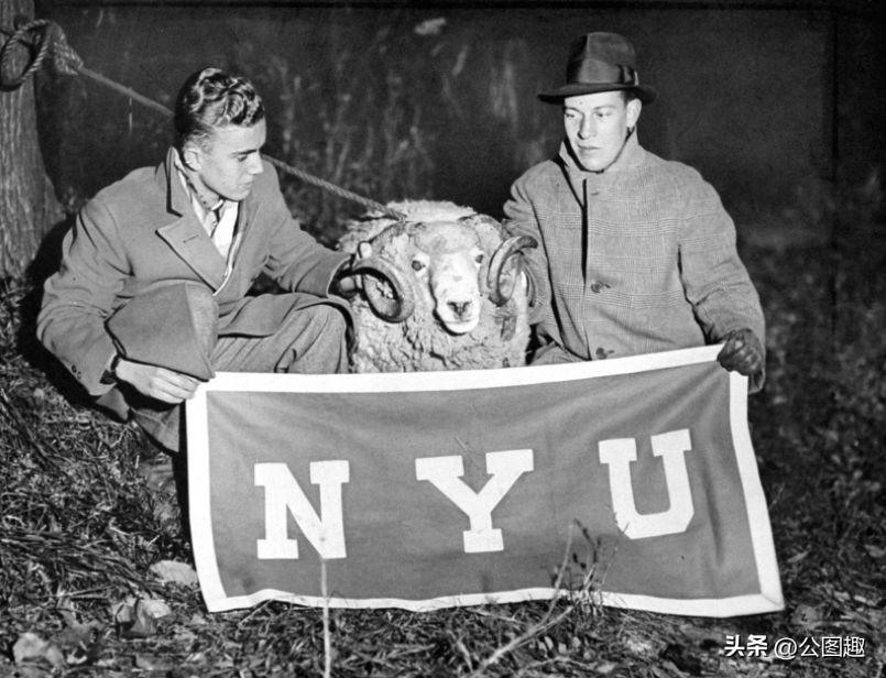 纽约学生与被盗的福特汉姆大学吉祥物合影,1933 年。