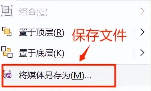第四步:用鼠标右键单击Power Point软件界面中的录屏文件,选择【将媒体另存为】选项,将录屏文件保存到电脑上。