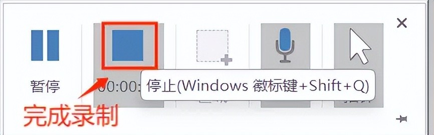 第三步:点击【停止】按钮或者按【Windows徽标键+Shift+Q】组合键完成录制。