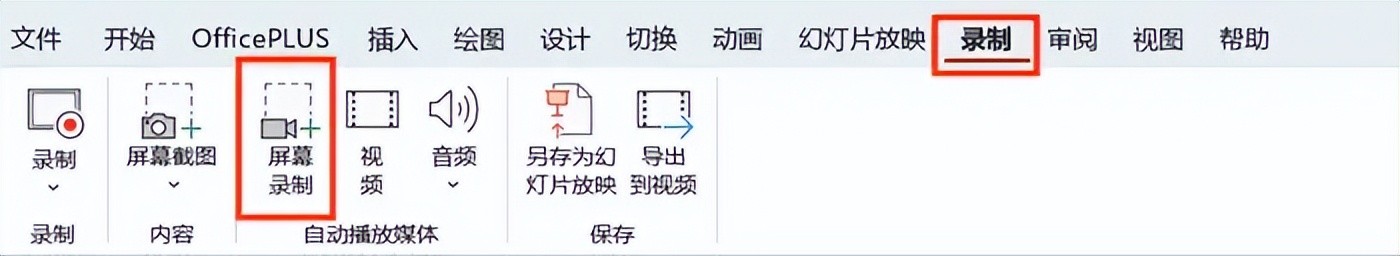第一步:打开Power Point软件,新建一个空白页,点击右上方的【录制】,选择【屏幕录制】。