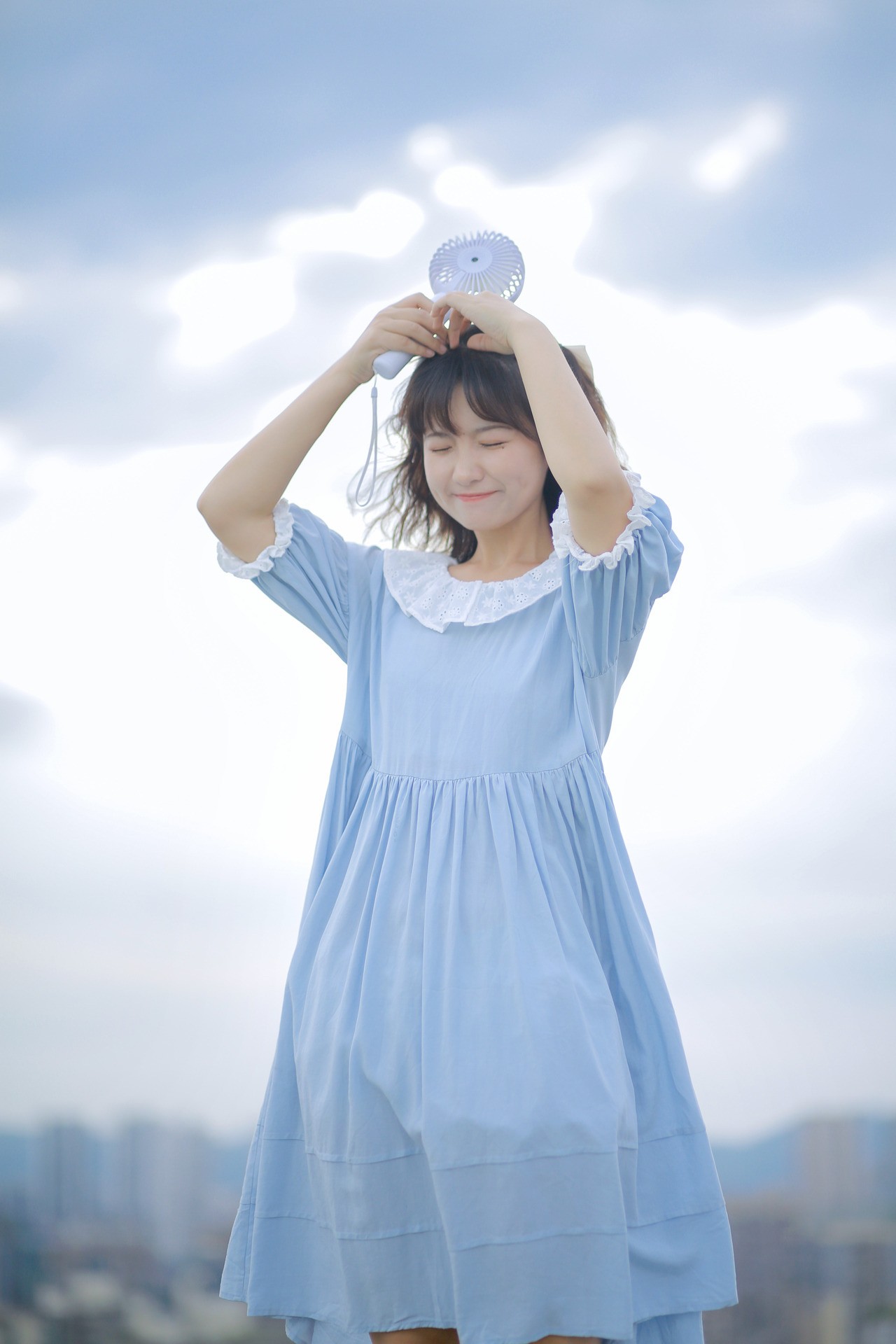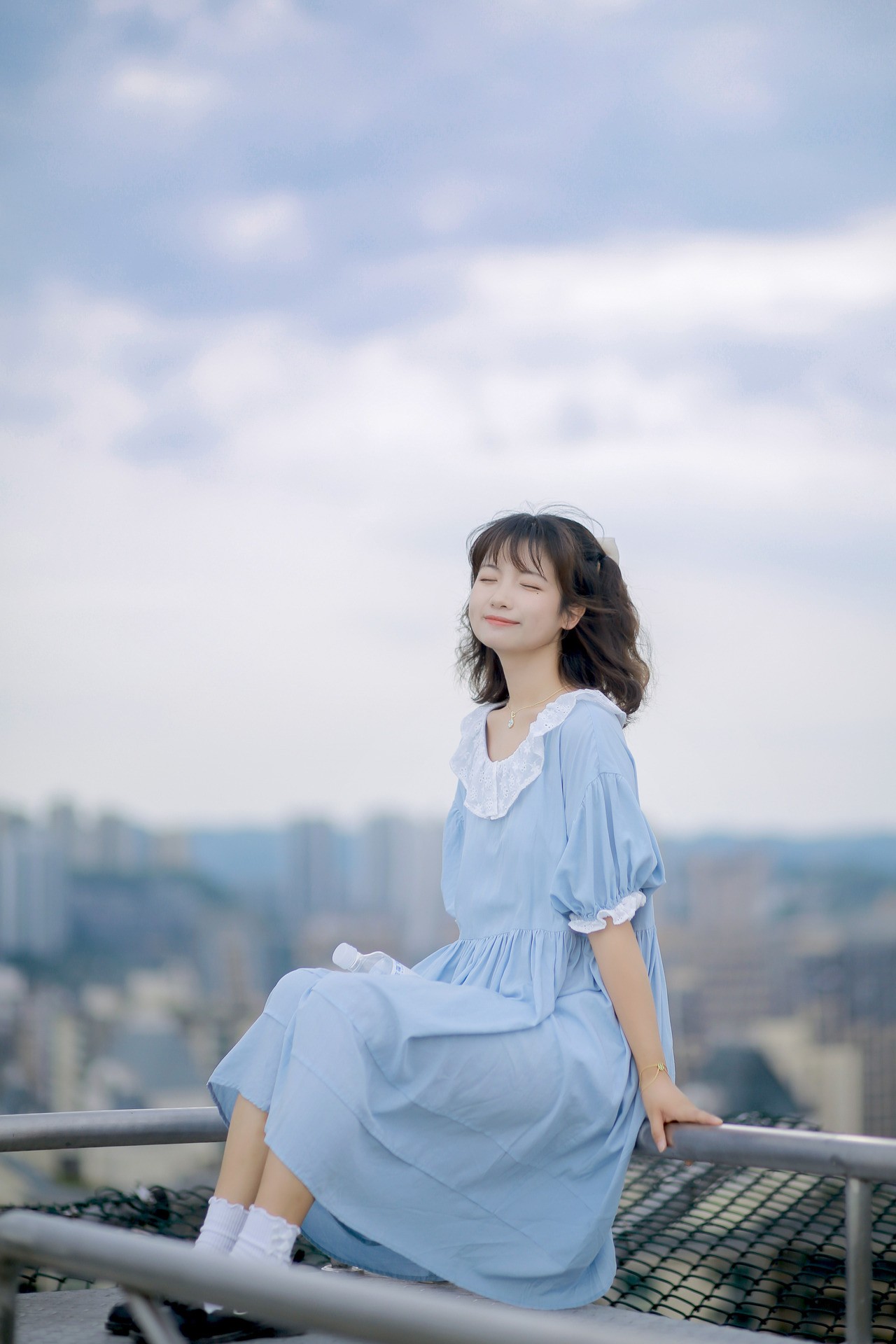 拍照露出双手会无所适从?不妨把手藏起来,以天空为背景,低角度仰拍,指导模特将双手放于背后,让自己从画面的一侧探出身来,清新好看的同时又带有俏皮的感觉。