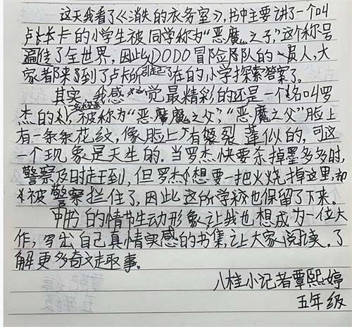 这天我看了《消失的衣务室》,书中主要讲了一个叫卢卡的小学生被同学称为“恶魔之子”这个称号,传遍了全世界,因此引起了DODO冒险队员们的注意,大家都来到了卢卡所在的小学探索答案。