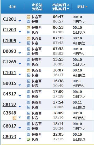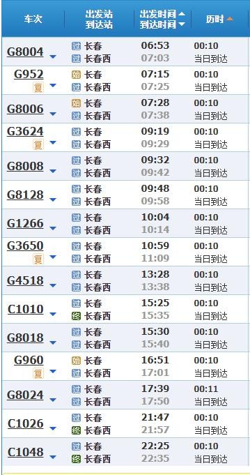 长春西站-长春站列车时刻表
