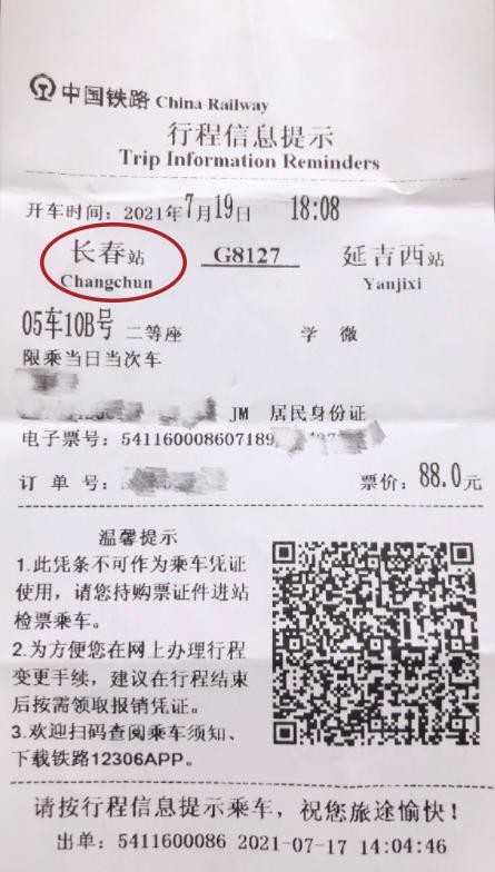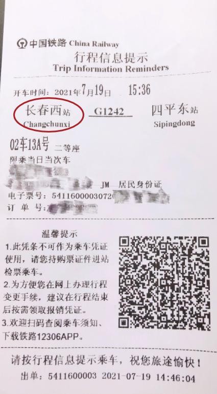 您购买车次有长春站字样