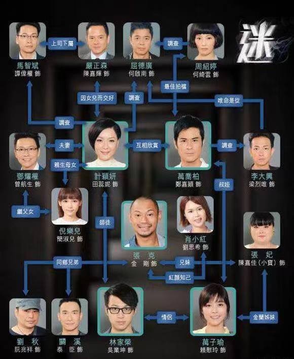 该剧讲述了万乔柏、计颖妍和张克这三个原本生活各不相干的人,因同时牵涉于一宗案件之中而揭露各种人性的阴暗面的故事。这部剧除了演员走心的演技,一定还要说说编剧别出心裁的叙事手法。故事分三条线展开,错综复杂。来张人物关系图给大家感受一下。