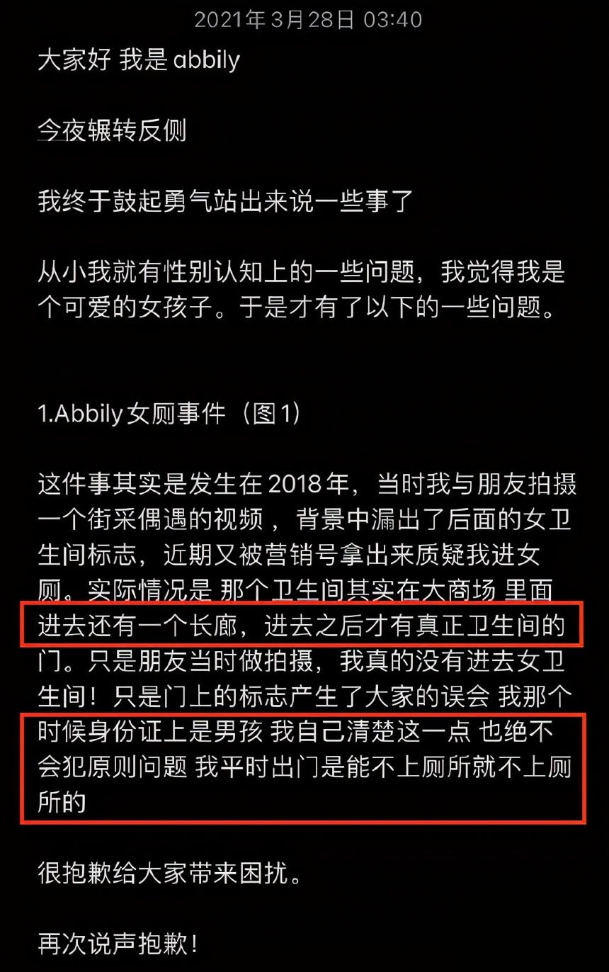 于是,一些营销号就说艾比进的是女卫生间,对他进行了一些言论攻击,事实上,那时候他进的是男卫生间。