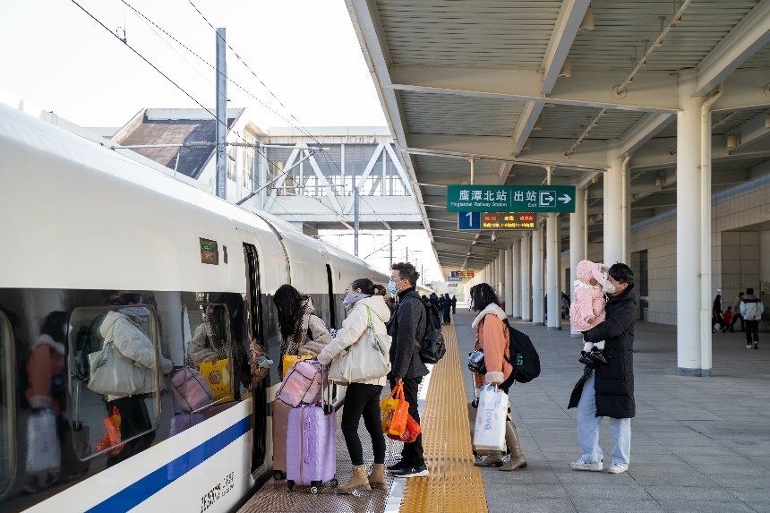 面对节后春运客流高峰的到来,为最大限度保障旅客顺利出行,鹰潭车站加强客流分析研判,合理安排运能,有效提升运力,加开旅客列车78列,其中鹰潭北站加开动车组32列、鹰潭站加开普速旅客列车46列。根据每日车票预售情况及时掌握客流流量和流向变化,提前做好重点旅客列车组织规划,合理优化进出站流线,加强售票大厅、候车室、进出站通道、站台、天桥、地道等客流密集场所的客流引导,确保旅客出行安全有序。