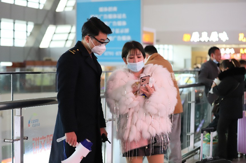 江西鹰潭北站,车站工作人员正在为旅客解答疑惑。吴亮萌浩摄