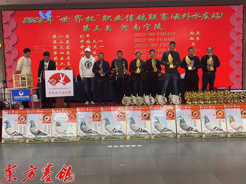 南京赛鸽名家丁钰生为第二关前十名颁奖。