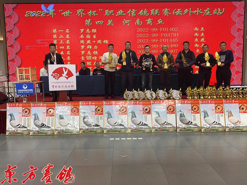 载誉江南虎啸堂赛鸽文化朱绍峥老师为第一关前十名鸽友颁奖。