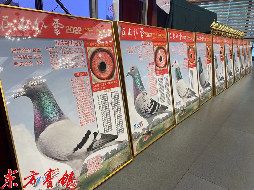 12月10日下午,双泾生态园大酒店宴会厅欢声笑语,云外水庄俱乐部2022颁奖盛典在这里举行,宴会厅里座无虚席,喜气洋洋。主席台上整整齐齐地放着一排制作精美的奖杯,特制的大型前十位五关鸽王相框,恭候着主人捧回家。