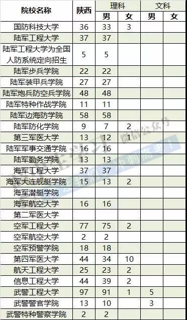 1、 招生总体情况。今年是军改大背景下新的院校体系运行后首次招生。军改后,全军和武警部队共43所院校,其中有26所院校招收青年学生(高考生)和生长军官士兵学员(士兵考军官学校),31所院校招收士官学员。