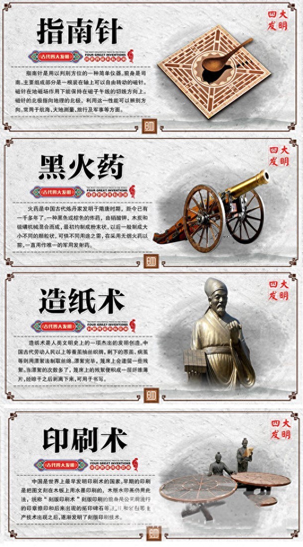 中国古代四大发明想必每个中国人都知道,指南针,黑火药,造纸术,印刷术。