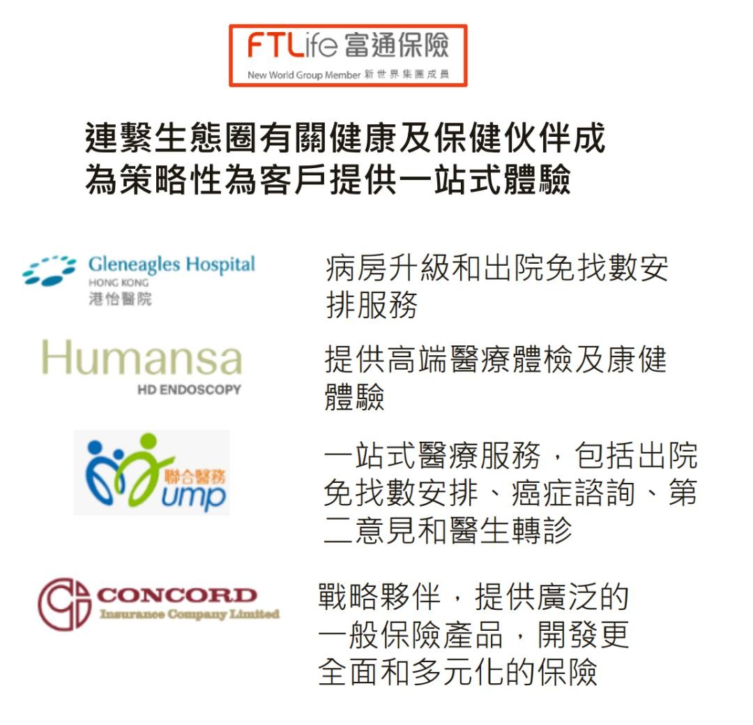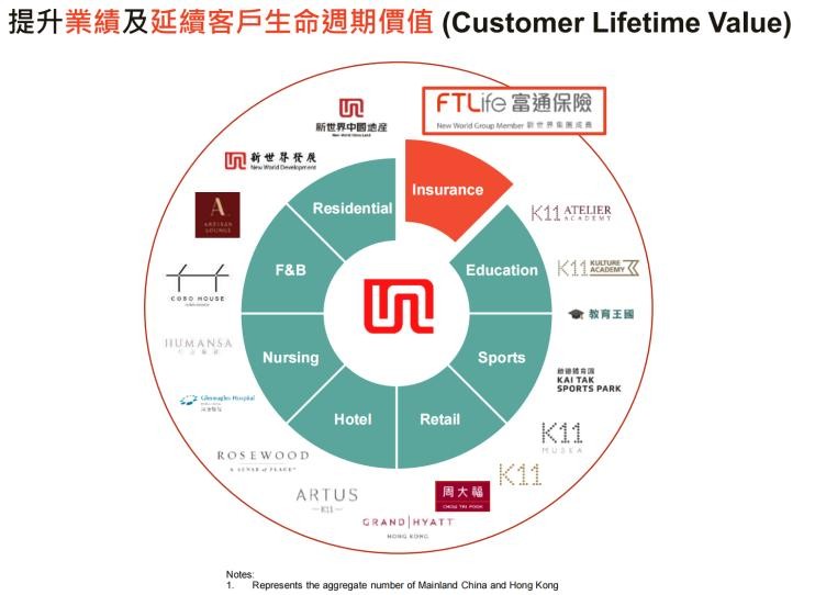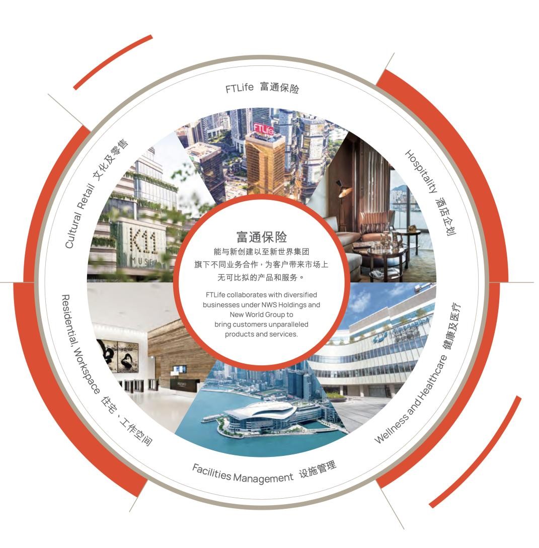 新世界生态圈:集团构建自身生态圈,增强业务能力,延长客户生命周期价值。富通保险精准定位,规划健康保障客户行程,借助新世界生态圈提高客户保障意识,打造独特的产品和体验,同时还可以利用强大的客户网络拓展营销范围。