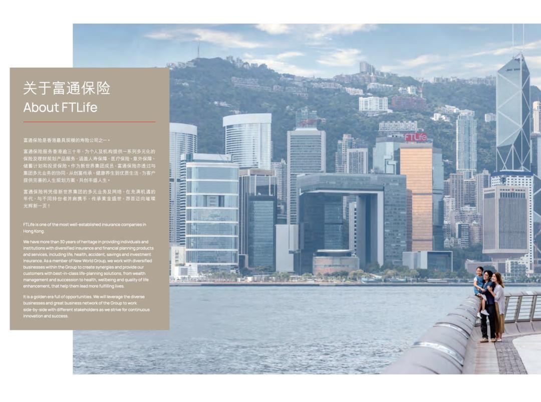 富通保险创立于 1985 年,是香港保险市场的重要参与者之一,专注于人寿保险业务。其为香港的个人和机构客户提供多样化的保险产品,涵盖寿险、养老金、投资型保险以及医疗和伤残保险。国际声誉,信赖之选。