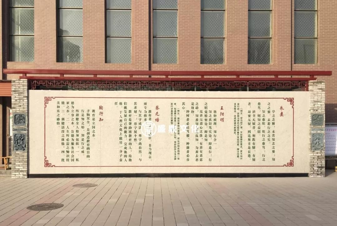 设计朱熹、王阳明、蔡元培、陶行知思想文化墙,通过环境文化的浸润、情怀的渲染让学生们明白学校核心理念的源泉所在,明白“学思力行”、“知行合一”、“因材施教”、 “循序渐进”等教育先驱们伟大的教育思想与学校核心文化理念之间的内在联系。