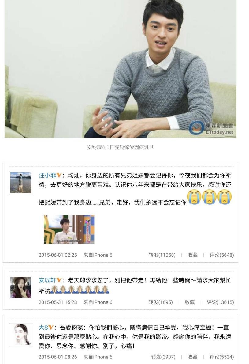 但也正是这一天,年仅32岁的台湾演员、歌手安钧璨,因患肝癌去世。