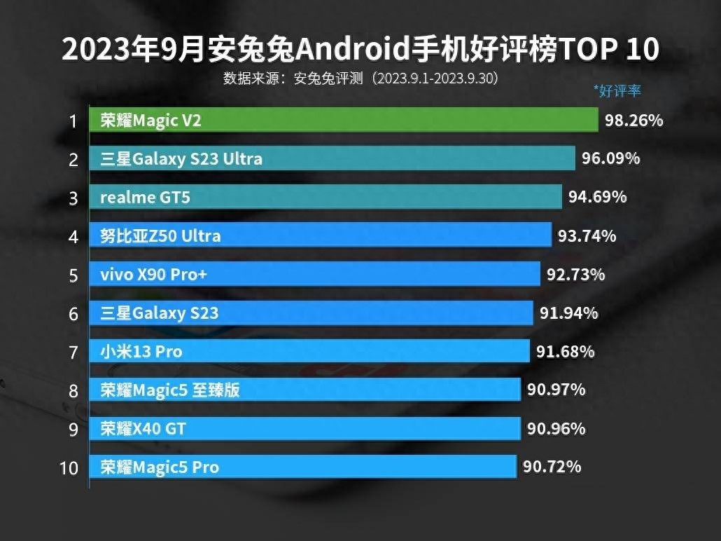 紧随其后的是三星,作为全球知名的科技巨头,三星的手机产品一直以其稳定的性能和出色的设计赢得了消费者的认可。在这次的好评榜中,三星能够位列第二,无疑是对其产品质量和用户体验的最好证明。
