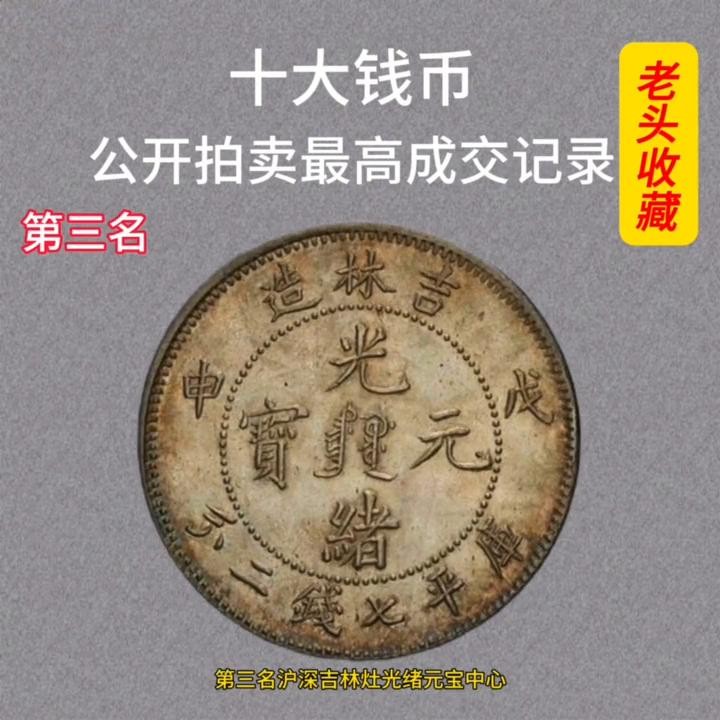 ·第三名沪深吉林灶光绪元宝中心,满文库评7000二分银币,成交价人民币805万。