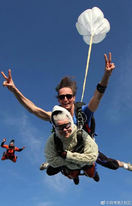 102岁奶奶玩跳伞过程图片
