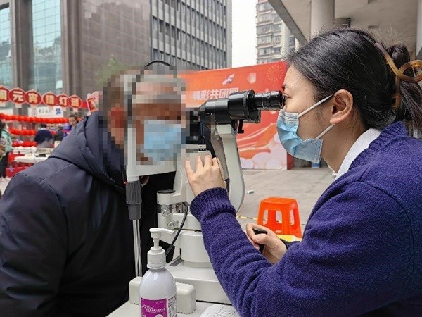工作人员为居民进行眼健康检查。重庆普瑞眼科医院供图