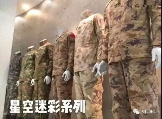 据了解,新式作训迷彩服正式名称为“星空迷彩”,其服花型颜色为全新设计,分为林地、荒漠、丛林、城市、沙漠等五种,能够适应国内外不同的地形地貌。