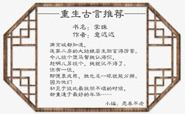 推荐:经典好看的重生古言,文笔好,情节妙,让人读之欲罢不能!