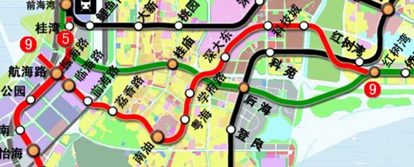 从深圳地铁9号线延长线规划图可以看到,9号线延长线从红树湾(南)站开始,一直延伸到航海路站,与5号线延长线接驳。该线路今年开工,预计2019年完工通车。